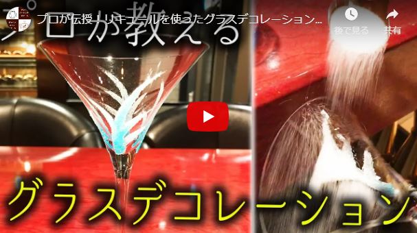 凝結させたリキュールを使ってグラスのデコレーションです。 ブルーキュラソーを4分の1程度まで煮詰めて絵の具代わりに使います。 それを使って筆でグラスに柄を書いたらその上から塩もしくはグラニュー糖をかけて模様を浮き上がらせ […]