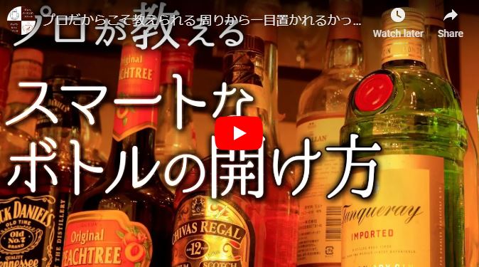 ボトル(キャップ)の開け方についてのコツの動画です。 ボトルはすべてのドリンク作成時に何げなく開けていますがいくつかのポイントを気を付けるとメリハリのあるかっこいい開け方になります。 人によってやり方は違うと思いますが、 […]