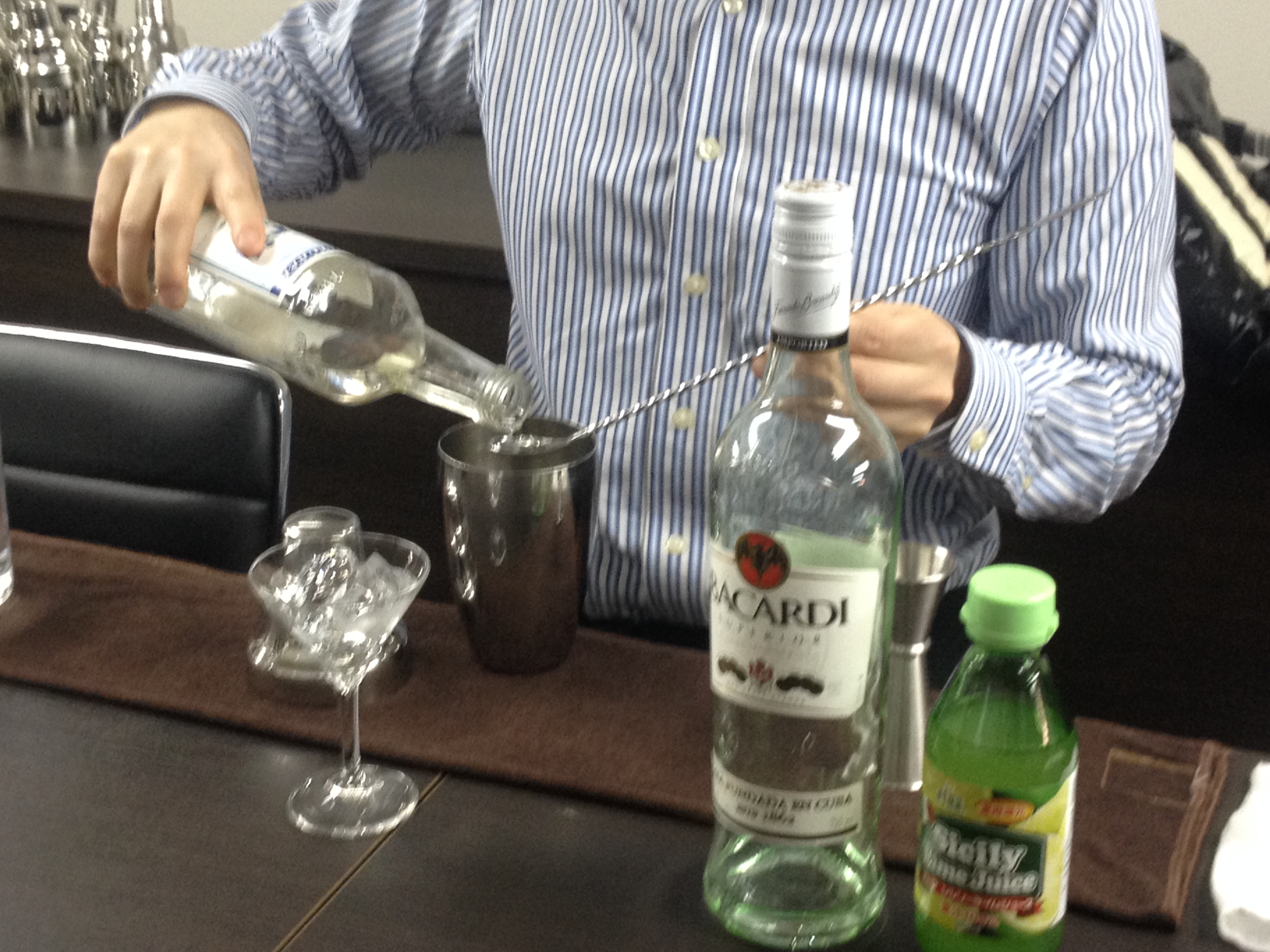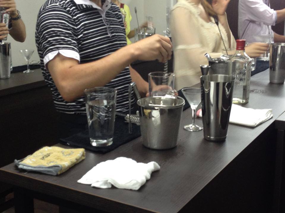 ステアという技法で作るマティーニというカクテルの実習やお水やトニックウォーター、ジンジャーエールなど、ソフトドリンクの勉強(試飲しながら)、ワインの基礎知識などの勉強もします。