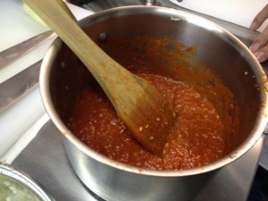 トマトソースの作成です。