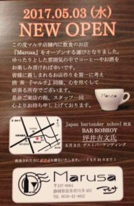 ジャパンバーテンダースクール・カフェスクールを卒業した太田さんが静岡県袋井市にカフェバー「Marusa」を5月3日に開店いたしました。