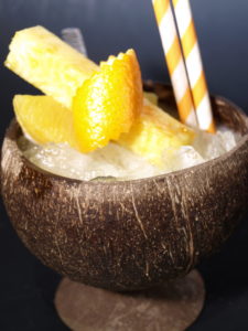 パイナップに砂糖をまぶしてバーナーで炙りキャラメリーゼしてからフレッシュピニャコラーダを作ります。コクが加わりとても芳醇な香りがします。